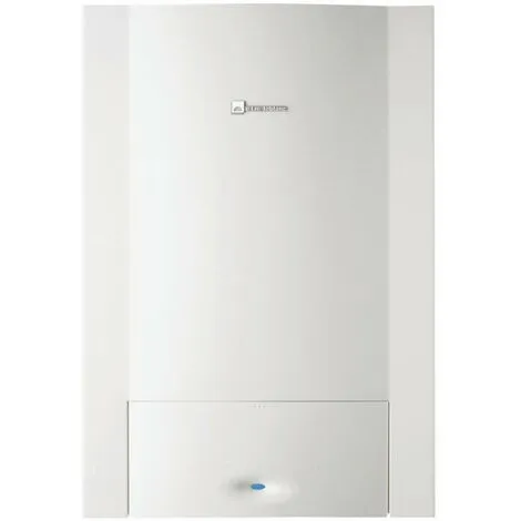 Chaudière murale gaz à condensation de 23 kW chauffage et eau chaude sanitaire accumulée par trois bouteilles en inox de 14 litres chacune. Evacuation des fumées par ventouse ou cheminée. Fonctionnement au gaz naturel. Conforme aux exigences de la règlementation Ecoconception